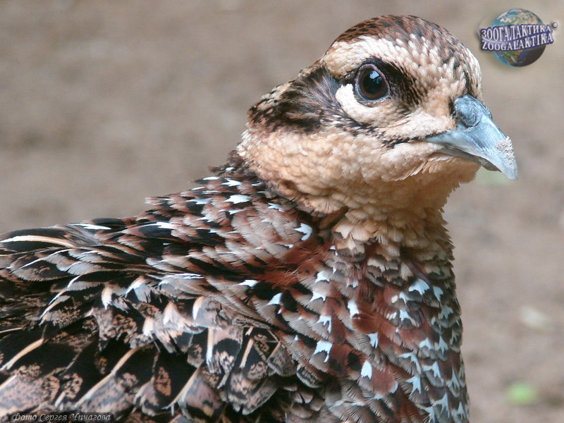 Оперение у этого фазана кажется чешуйчатым из-за блестящих темно-коричневых и черных каемок на перьях. Голова черная с белой шапочкой и широким кольцом, которое идет от горла к затылку. Крылья светлые с черным окаймлением перьев, живот и нижняя часть груди черно-бурые. Хвост с чередующимися черными серебристо-серыми поперечными полосками, ноги свинцово-серые. Клюв светло-серый. Длина самца около 210, хвост 100-160 см. У самки голова темно-коричневая, на боках посветлее, ушная область и штрихи под глазом черноватые. На крыльях каштаново-бурые перья с серыми кончиками и черными пятнами. Нижняя сторона с зеленоватым оттенком, хвост серовато-коричневый с коричневыми и черными поперечными полосами и черновато-белыми кончиками рулевых перьев. Длина самки 75, хвост 35-45 см.