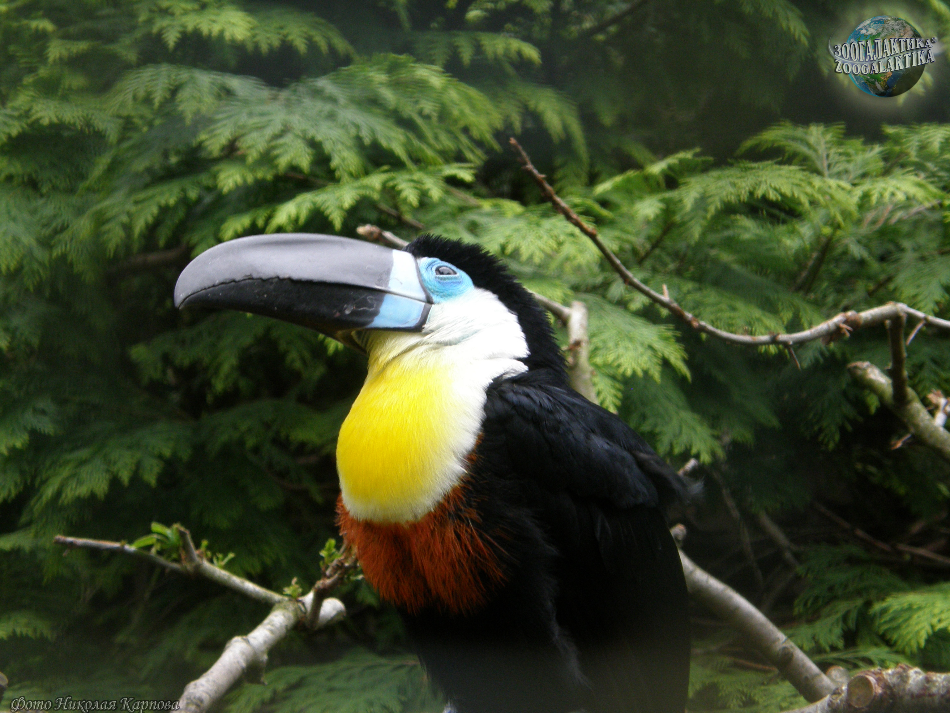 Черноклювый тукан (Ramphastos vitellinus vitellinus) - обитатель тропических лесов Америки, Южной Мексики и Северной Аргентины. Размер тела этого тукана 44-46 см, вес 350-440 гр. Его биология сходна с описанными видами.