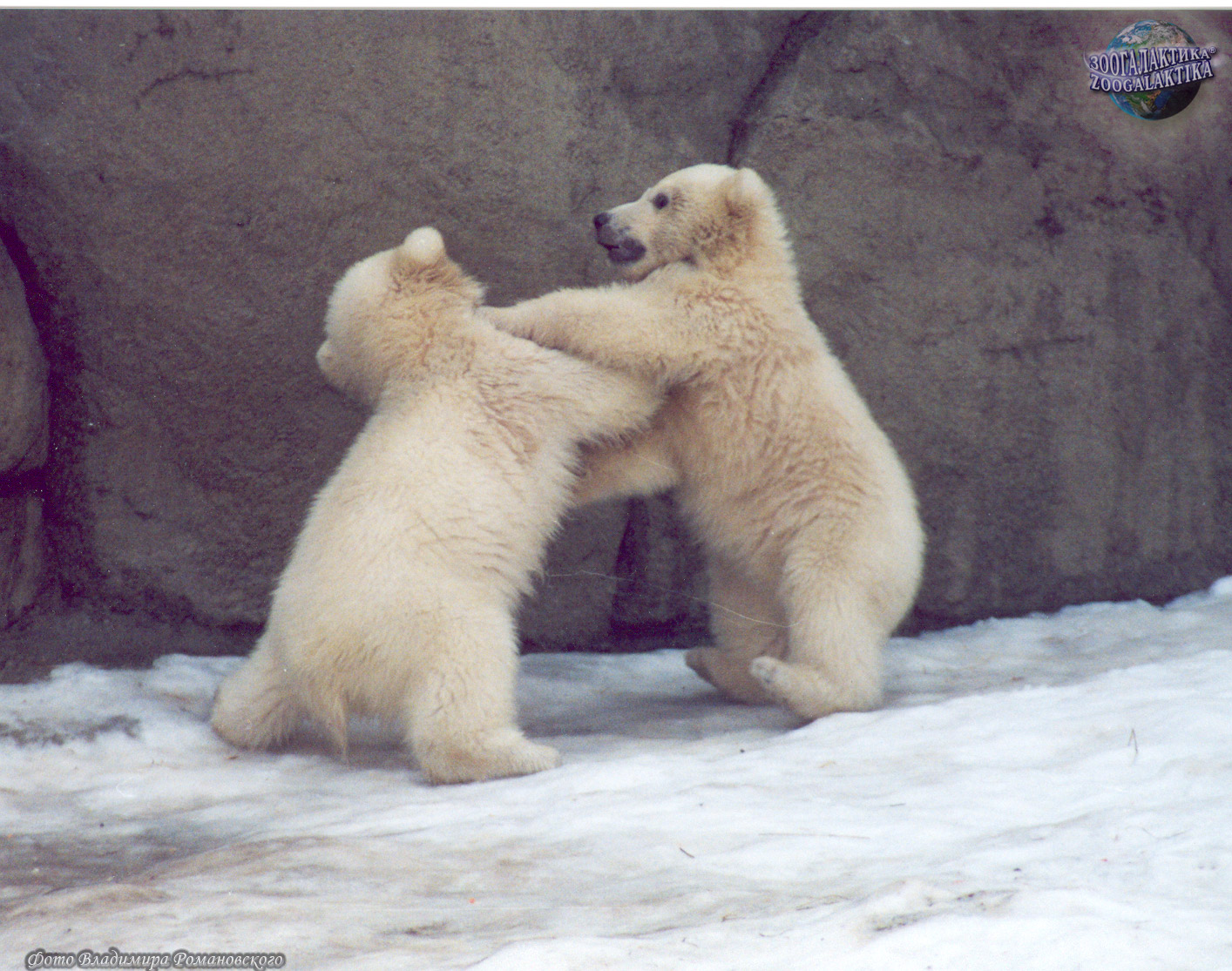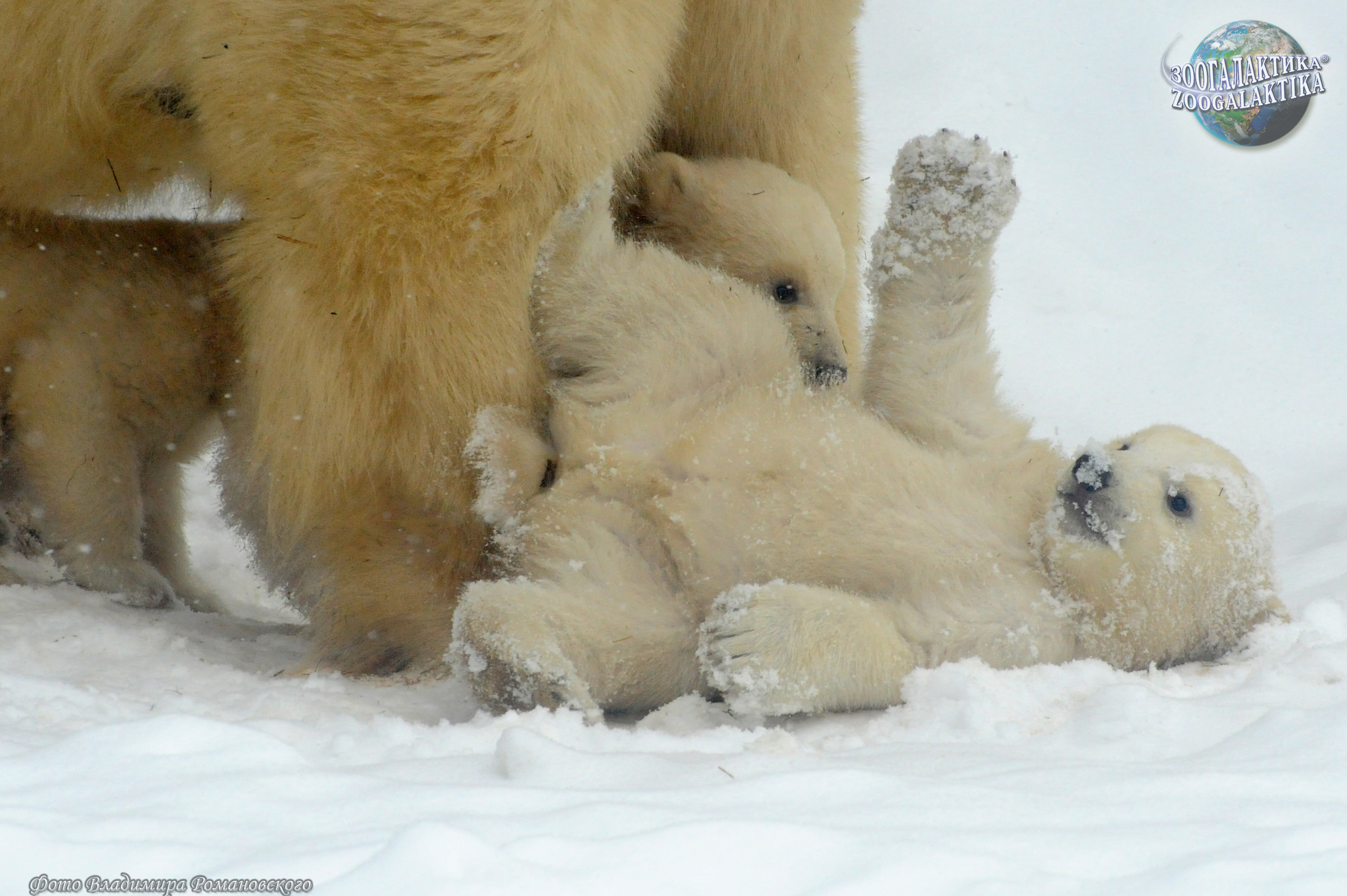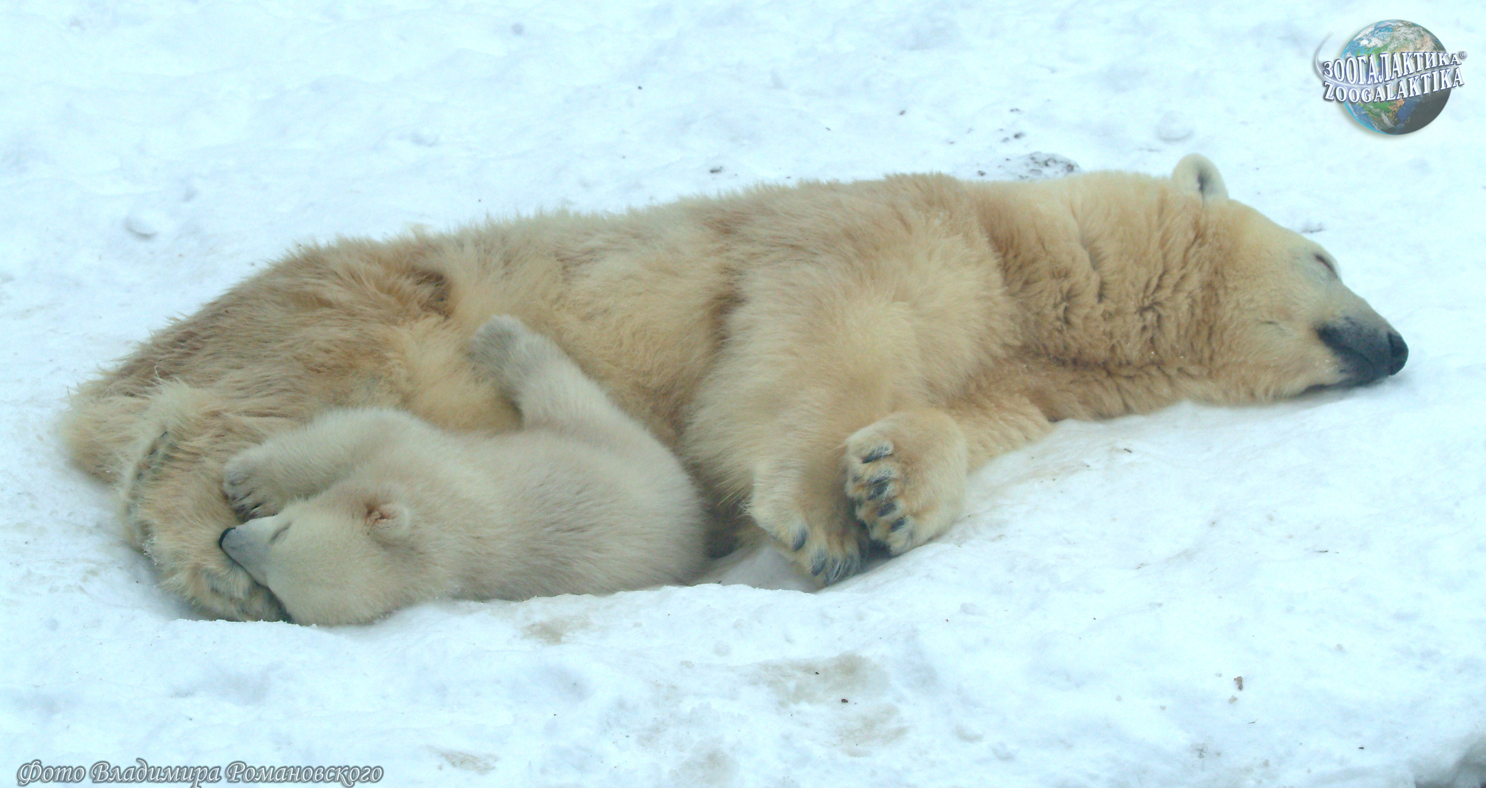 В разгар арктической зимы в снежной берлоге у белых медведей рождаются 1-3 покрытых редкой белесой шерсткой, беспомощных, крохотных слепых и глухих медвежонка. Длина их тела 17-30 см, вес 500-700 г, и по сравнению с медведицей их величина ничтожна. Дело в том, что медведица всю зиму не питается и живет за счет запасов жира - к концу этой вынужденной голодовки она теряет почти половину своего веса. В таких условиях самка, безусловно, не смогла бы прокормить более крупных детенышей. Развиваются медвежата очень медленно: способность видеть и слышать появляется у них только в месячном возрасте, зубы прорезаются ещё через месяц. К этому времени малыши начинают выходить из берлоги, но следовать за матерью они смогут лишь в 3-х месячном возрасте. Самцы не только не помогают самкам воспитывать детей, но и могут при случае их съесть - каннибализм у белых медведей не редкость. Заботы медведицы о потомстве не прекращаются, пока медвежата не станут совсем самостоятельными и не овладеют сложным искусством добывания пищи в полной мере. Через два года мать и дети становятся практически одинаковыми по размеру (молодые самцы даже перерастают матерей) - в это время и происходит их расставание.