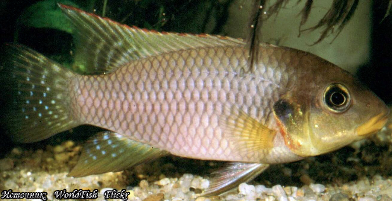 Бенитохромис риомунийский Benitochromis riomuniensis 15557 Бенитохромис риомунийский (Benitochromis riomuniensis) занесен в Красную книгу МСОП в статусе "вымирающий вид"