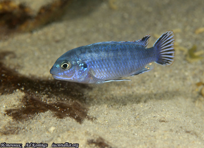 Линейный лабидохром Labidochromis strigatus 15592 Линейный лабидохром (Labidochromis strigatus) занесен в Красную книгу МСОП в статусе "уязвимый вид"